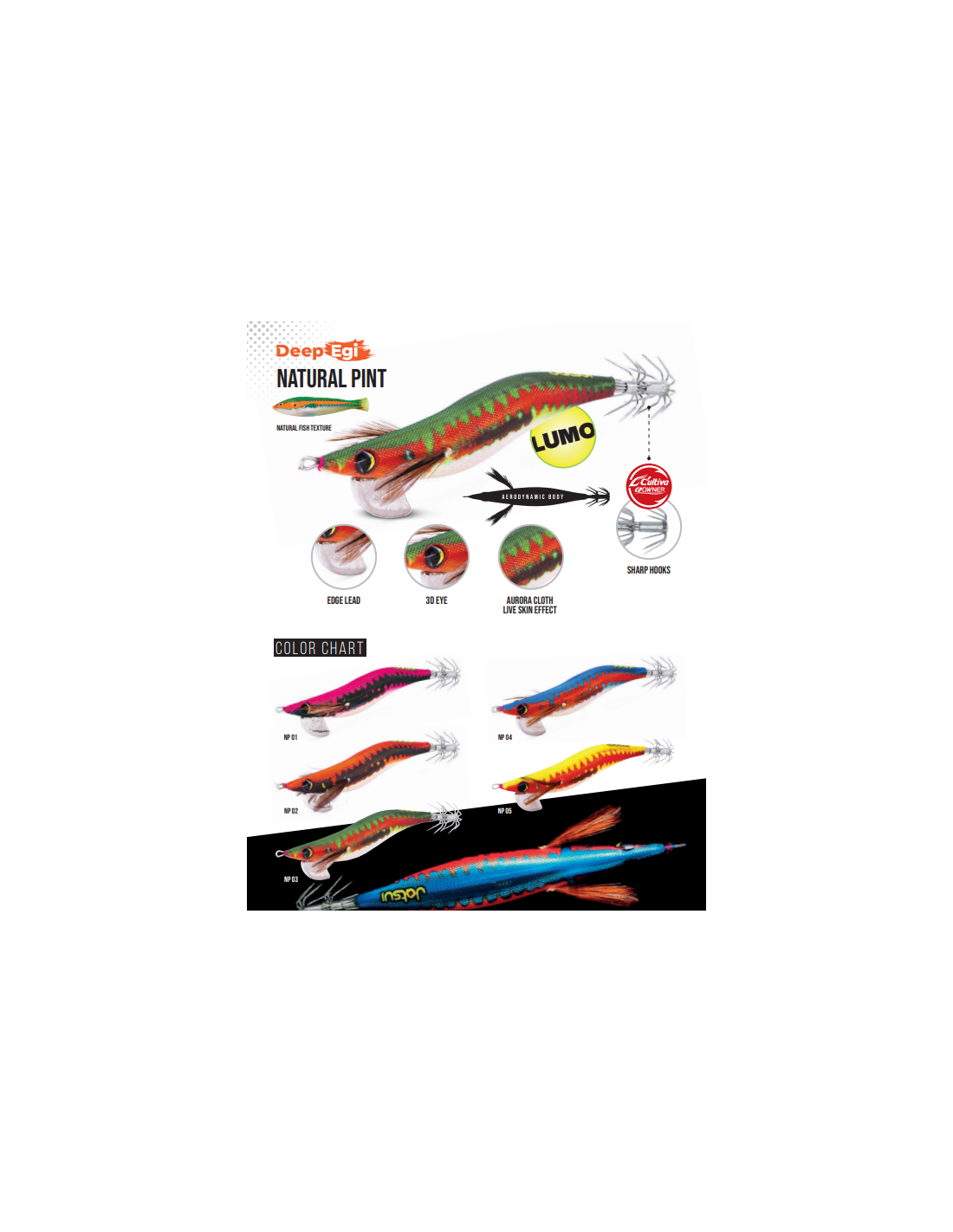 Totanara Jatsui Deep Egi Natural Pint 3.0 è un Egi per la pesca di seppie e calamari. E' stato ideato per imitare con assoluto realismo i colori e i contrasti tipici dei piccoli pesci foraggio mediterranei. Il corpo snello e bilanciato assicura grande precisione nel lancio e stabilità in fase di affondamento. I dettagli sono curati nei minimi particolari, occhio 3D effetto LUMO, palette maggiorate e finitura Natural Simulation con fibre naturali che amplificano il richiamo visivo. Il tessuto UV a fluorescenza integrata garantisce massima visibilità anche in profondità. Dorata di cestello Cultiva Owner, è l' artificiale ideale per affrontare le condizioni di pesca più esigenti, sia fa terra che dalla barca.